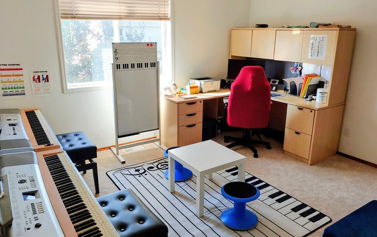 Cozy Music School is a small, family-style music school run from my home in Edmonton. I started this school because I wanted music lessons to feel welcoming, stress-free, and fun—just like music felt for me when I was little.